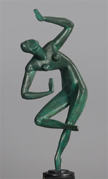 | Alexander ARCHIPENKO 1887 — 1964Олександр АРХИПЕНКО • Александр АРХИПЕНКОAlexander Archipenko (Oleksander Porfyriyovych Arkhypenko) was born in 1887 in Kyiv, Ukraine. Studied art at the Kyiv Art School in 1902–1905. In 1906 moved to Moscow, and in 1908 to Paris. Studied briefly at the École des Beaux-Arts in Paris and then settled on learning sculpture techniques via self-study in the Louvre. In 1910 he exhibited his works with a group of Cubists at the Salon des Artistes Indépendants and then exhibited his works there annually until 1914. In 1911 his works appeared also at the Salon d`Automne. In 1912 Archipenko joined a new artistic group—La Section d`Or, which numbered among its members P. Picasso, G. Braque, J. Gris, F. Léger, R. Delaunay, R. de la Fresnaye, J. Villon, F. Picabia, and M. Duchamp—and participated in the group`s exhibitions. In 1912 Archipenko opened his own school of sculpture in Paris. His first one-man show took place in Hagen, Germany in 1912, where he displayed his Médrano I, the first modern sculpture made of various polychromed materials. Next year he had a one-man show at Galerie Der Sturm in Berlin. In 1913 his work appeared at Armory Show in New York. During the First World War he lived in Cimiez near Nice, where, in 1917, he developed a cubist play, La Vie Humaine; he returned to Paris in 1918. From 1919 to 1921 Archipenko`s works were exhibited in many cities throughout Europe. In 1920 he had a solo show at the Ukrainian Pavillon at the Venice Biennal. In 1921 Archipenko moved to Berlin, where he established a school of sculpture. Most of Archipenko’s work in German museums was confiscated and destroyed by the Nazis in their purge of “degenerate art.” In 1923 Archipenko moved to the United States. He established a school in New York, and in the following year, he moved near Woodstock, New York. In 1924, Archipenko invented his first kinetic work, Archipentura. For the next 30 years, he taught throughout the United States at art schools and universities, including the short-lived New Bauhaus. In 1933 his work appeared in the Ukrainian Pavilion at the Century of Progress Exposition in Chicago. In 1937 he moved to Chicago, where he opened his Modern School of Fine Arts and Practical Design. In 1947, he produced the first of his sculptures that are illuminated from within. He accompanied an exhibition of his work throughout Germany in 1955–56, and at this time began his book Archipenko: Fifty Creative Years 1908–1958, published in 1960. Wherever he lived, Archipenko was always active in the Ukrainian community. Many of his works have Ukrainian themes, e.g the relief Ukraine (1940), four busts of Taras Shevchenko, busts of Ivan Franko and Prince Volodymyr the Great, and portraits of Ukrainian public figures. Associated with the cubist movement, Archipenko departed from the classical sculpture design of his time and introduced negative space to create a new way of looking at the human figure, showing a number of views of the subject simultaneously. Archipenko recognized the aesthetic value of the void—the hollowed-out shape or perforation as a complement to the bulging mass—as exemplified by his Madonna in marble and the bronze Woman Combing Her Hair (1915, Museum of Modern Art, New York City). He is also known for introducing his inventive mixing of genres all through his career: devising `sculpto-paintings`, and later experimenting with materials such as clear acrylic and terra cotta.