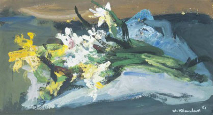 Daffodils and magnolia blooms 1952 board, oil 15.75/24.25 in (40.00/61.60 cm)