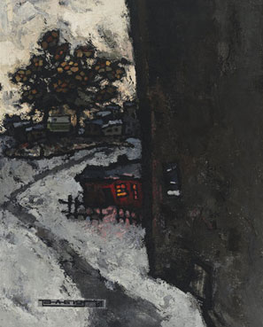 Still life set in a Moscow back street on a winter night 1961 canvas, oil 25.00/32.01 in (63.50/81.30 cm)