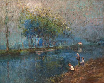 Les enfants au bord du fleuve canvas, oil 23.62/28.94 in (60.00/73.50 cm)