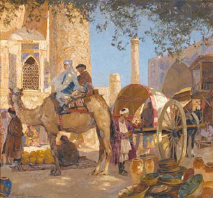 The bazaar in Samarkand 1923 board, oil 27.95/30.51 in (71.00/77.50 cm)