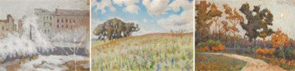 Triptych: Frost in the city; in the Summer; Evening in the garden board, oil 14.57/17.13 in (37.00/43.50 cm)
