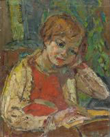Enfant lisant board, oil 21.65/17.40 in (55.00/44.20 cm)