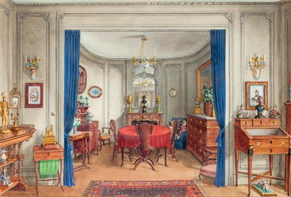 View of the dining-room in Alexandre Popoff`s apartment 1945 on paper, gouache 13.39/19.88 in (34.00/50.50 cm)