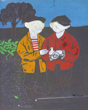 Deux garçons et tourterelle on paper, gouache 12.80/9.06 in (32.50/23.00 cm)