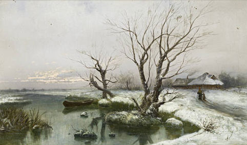 The snowy banks of the river 1897 canvas, oil 12.60/20.79 in (32.00/52.80 cm)