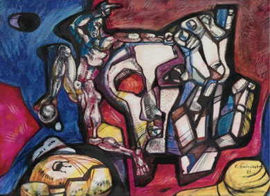 Man with skull 1982 on paper, gouache 22.01/30.00 in (55.90/76.20 cm)