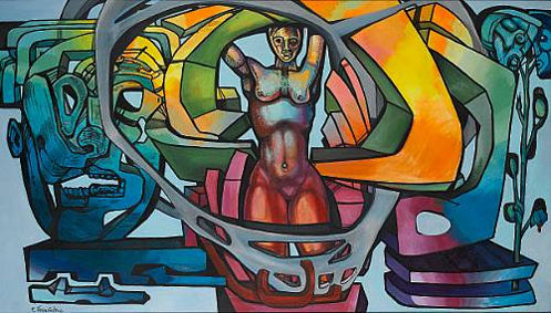 Tree of life canvas, acrylic 39.37/69.69 in (100.00/177.00 cm)