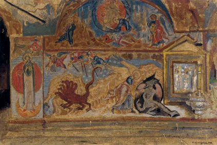 Деталь фрески, интерьер церкви 1910 картон, акварель 49.60/73.00 см (19.53/28.74 дюймов)